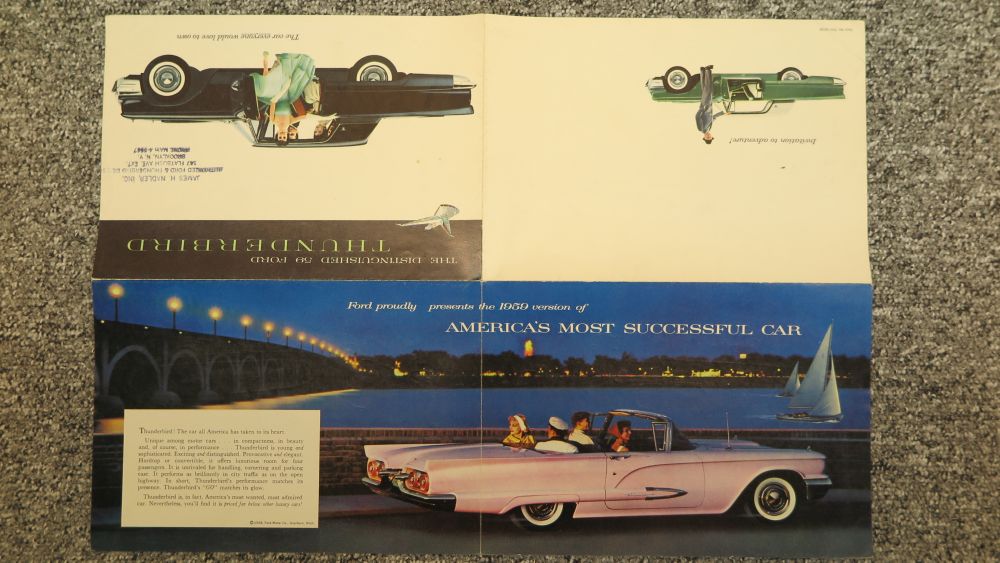 50er Jahrgang Prospekte 1959 Ford Thunderbird Prospekt klein, zum Falten 6 Jahren ago 23×16 cm bzw. 35x41cm wenn offen, sehr guter Zustand Continue Reading Previous 1959 Ford Thunderbird und Galaxie Prospekt grossNext 1959 Ford Prospekt Brochure