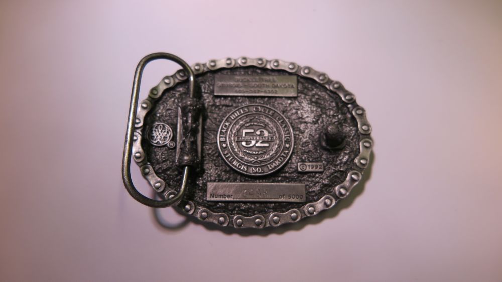 Gürtelschnalle Belt Buckle Gürtelschnalle 1992 Sturgis 6 Jahren ago Nr. 3498 of 5000. Offizielle Ausgabe dieses Motorrad Treffens in South Dakota. Einzigartiges Design. Aus der guten alten Zeit als Siskiyou noch Made in America war. Continue Reading Previous Belt Buckle Gürtelschnalle 1990 Sturgis, 50 Jahre JubiläumNext Belt Buckle Gürtelschnalle Cadillac